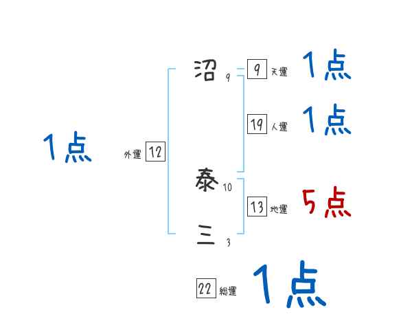 沼泰三さんの画数の鑑定結果