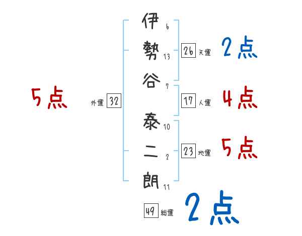 伊勢谷泰二朗さんの画数の鑑定結果