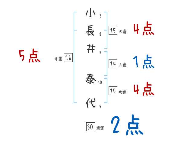外運![]() | 小長井泰代さんの外運は16画の5つ星!人望が厚く大きく発展する。逆転成功が見える。 生活面を象徴する運勢です。外部から受ける影響力を表し、結婚運、家庭運や職場、環境への順応性を表します。 |