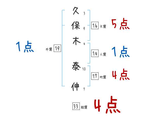 外運![]() | 久保木泰伸さんの外運は19画の1つ星!優れた才能を持ちますが、協調性が足りないことも。周りの人と協力する事を意識しましょう。 生活面を象徴する運勢です。外部から受ける影響力を表し、結婚運、家庭運や職場、環境への順応性を表します。 |