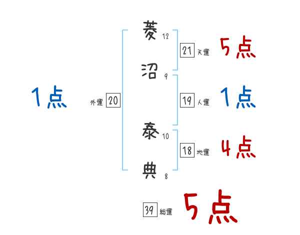 天運![]() | 菱沼泰典さんの天運は21画の5つ星!統率力がある。独立し成功する。名誉を手に入れる。 家系が持つ宿命的な運勢を表します。祖先から受け継いだ苗字ですので自分の力が及びません。家柄を象徴します。 |