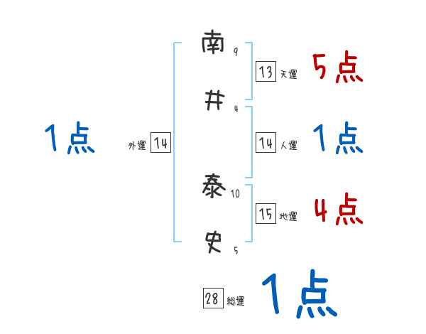 南井泰史さんの画数の鑑定結果