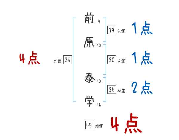家系が持つ宿命的な運勢を表します。祖先から受け継いだ苗字ですので自分の力が及びません。家柄を象徴します。