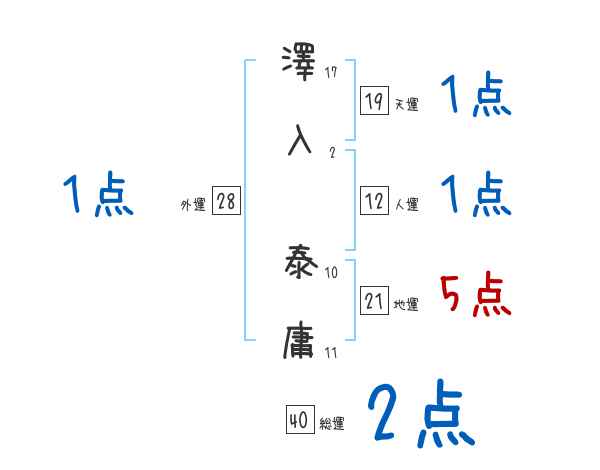 澤入泰庸さんの画数の鑑定結果