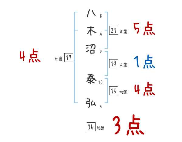 八木沼泰弘さんの画数の鑑定結果