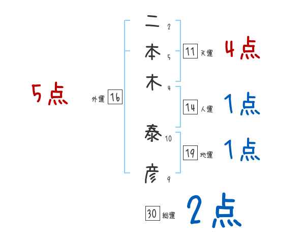 天運![]() | 二本木泰彦さんの天運は11画の4つ星!着実に富や地位を得る幸運な人生。 家系が持つ宿命的な運勢を表します。祖先から受け継いだ苗字ですので自分の力が及びません。家柄を象徴します。 |