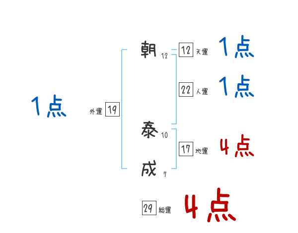 朝泰成さんの画数の鑑定結果