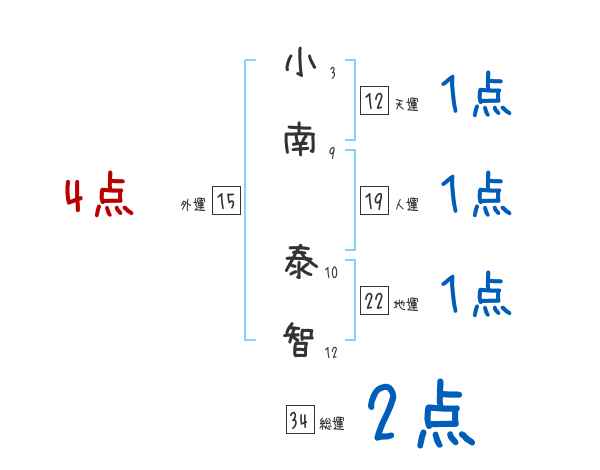 総運![]() | 小南泰智さんの総運は34画の2つ星!独創性に優れるが、自尊心が強く災難に注意しましょう。 あなたの人生を表す1番重要な運勢です。生涯を通じて影響する総合運となり、主に50歳以降の晩年期に影響を及ぼします。 |