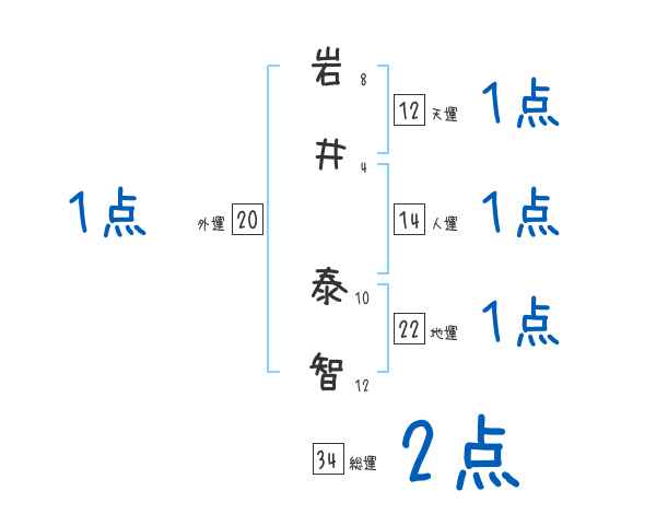 外運![]() | 岩井泰智さんの外運は20画の1つ星!社交が苦手。人とは違った才能があり波乱万丈な人生かも。 生活面を象徴する運勢です。外部から受ける影響力を表し、結婚運、家庭運や職場、環境への順応性を表します。 |