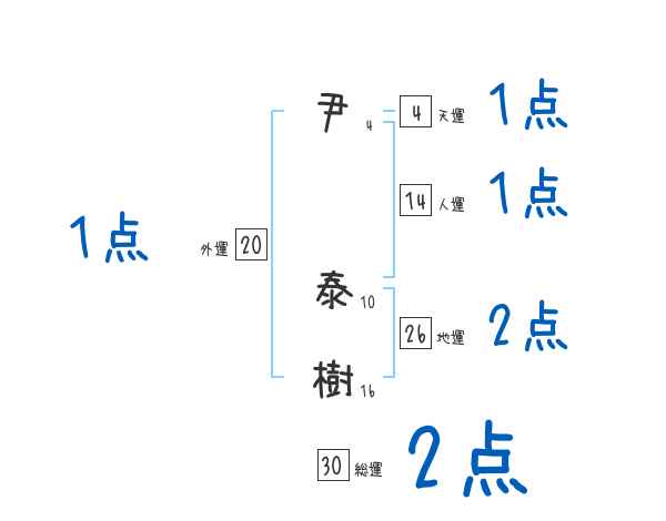 天運![]() | 尹泰樹さんの天運は4画の1つ星!感情が不安定で苦労するかも。周囲との協調を心掛けましょう。 家系が持つ宿命的な運勢を表します。祖先から受け継いだ苗字ですので自分の力が及びません。家柄を象徴します。 |