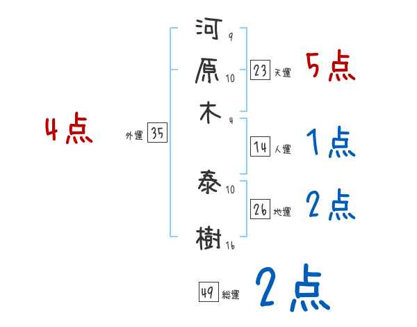 河原木泰樹さんの画数の鑑定結果