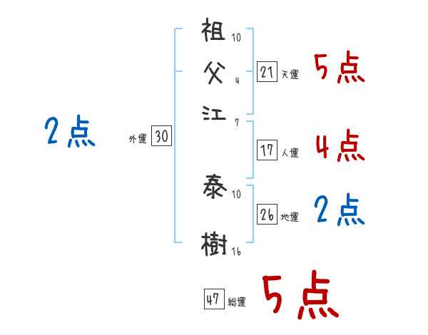 総運![]() | 祖父江泰樹さんの総運は47画の5つ星!実力が開花し発展する円満な人生。財に恵まれる。 あなたの人生を表す1番重要な運勢です。生涯を通じて影響する総合運となり、主に50歳以降の晩年期に影響を及ぼします。 |