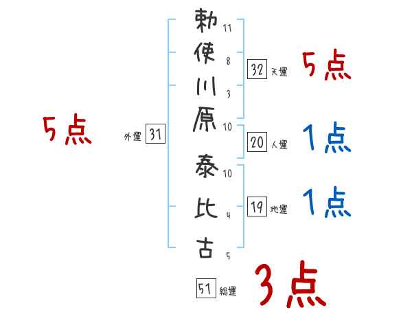 天運![]() | 勅使川原泰比古さんの天運は32画の5つ星!柔軟性があり成功する。チャンスが多く金運が良い。 家系が持つ宿命的な運勢を表します。祖先から受け継いだ苗字ですので自分の力が及びません。家柄を象徴します。 |