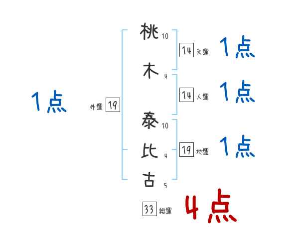 天運![]() | 桃木泰比古さんの天運は14画の1つ星!人に対して優しいがストレスを溜め込みがち。人間関係のトラブルを避けるよう気をつけましょう。 家系が持つ宿命的な運勢を表します。祖先から受け継いだ苗字ですので自分の力が及びません。家柄を象徴します。 |