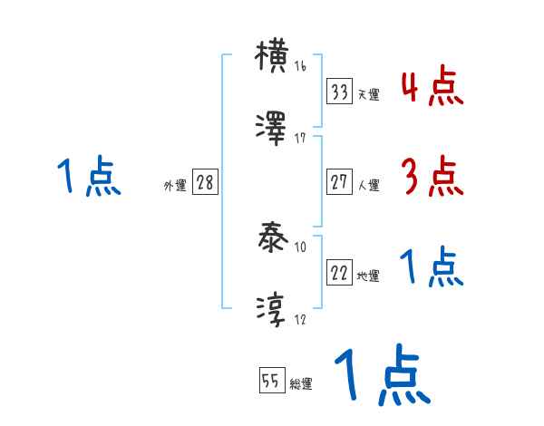 横澤泰淳さんの画数の鑑定結果