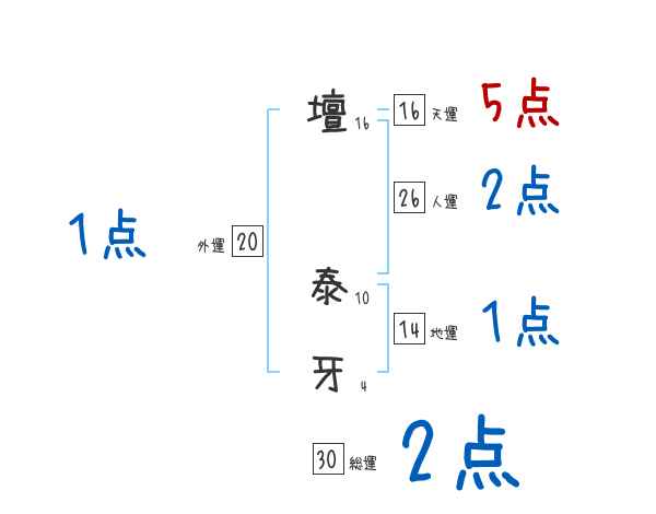 壇泰牙さんの画数の鑑定結果