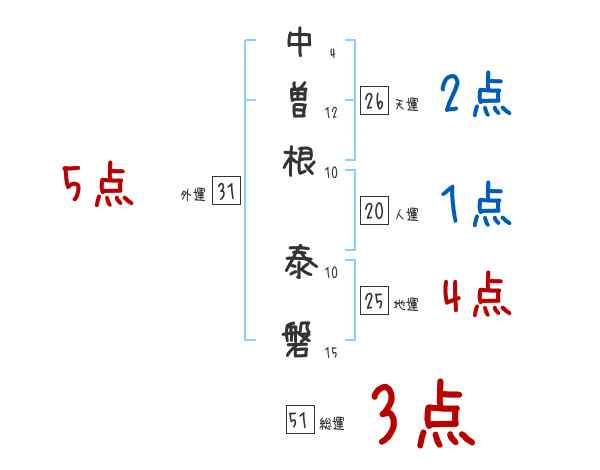 中曽根泰磐さんの画数の鑑定結果