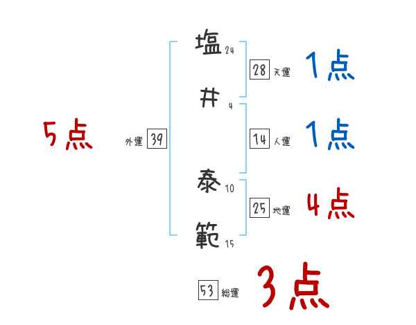 塩井泰範さんの画数の鑑定結果