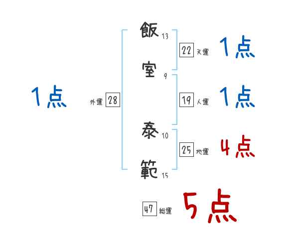 天運![]() | 飯室泰範さんの天運は22画の1つ星!努力することが苦手ないっぽう手先が器用。芸術性にも優れる。 家系が持つ宿命的な運勢を表します。祖先から受け継いだ苗字ですので自分の力が及びません。家柄を象徴します。 |