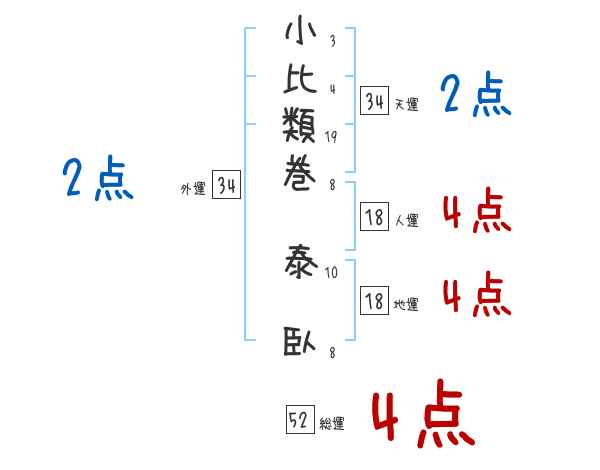 人運![]() | 小比類巻泰臥さんの人運は18画の4つ星!情熱的で剛気。忍耐力があり信頼される。 性格や才能などを表す2番目に重要な運勢です。人間関係や協調性、社会的な成功に影響します。主に20歳から50歳ぐらいまでの中年期の運勢を表します。 |