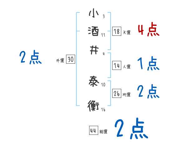 家系が持つ宿命的な運勢を表します。祖先から受け継いだ苗字ですので自分の力が及びません。家柄を象徴します。