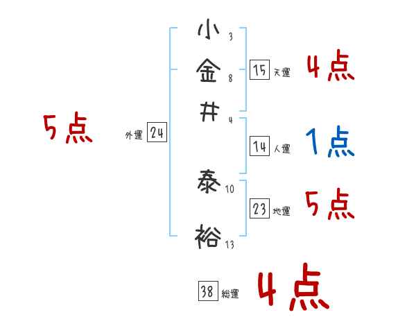 小金井泰裕さんの画数の鑑定結果