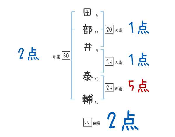 田部井泰輔さんの画数の鑑定結果