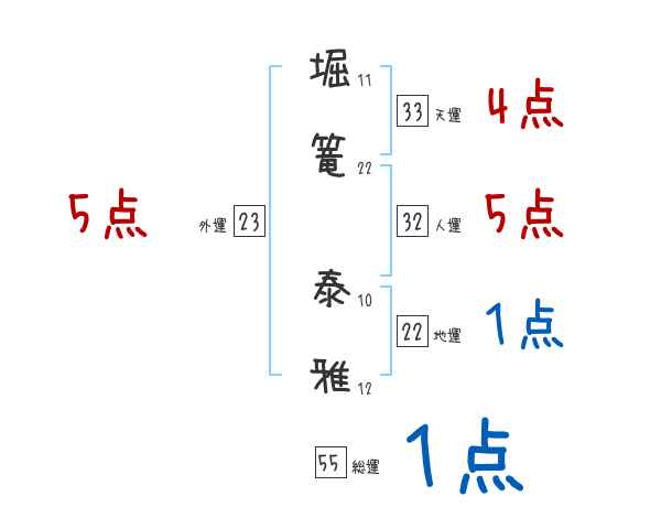 堀篭泰雅さんの画数の鑑定結果