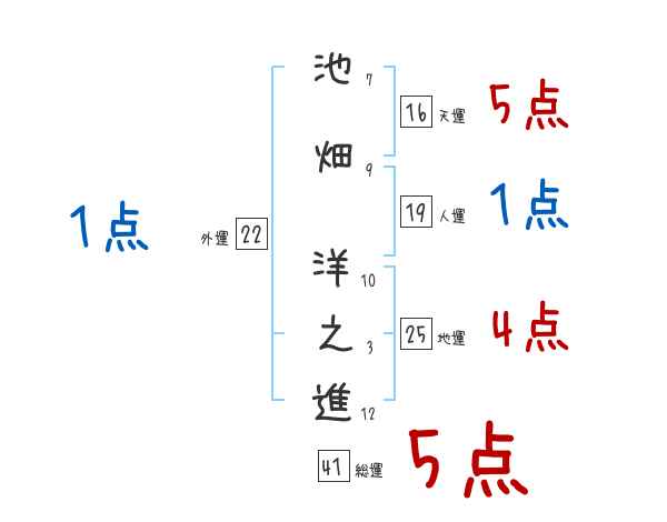 天運![]() | 池畑洋之進さんの天運は16画の5つ星!人望が厚く大きく発展する。逆転成功が見える。 家系が持つ宿命的な運勢を表します。祖先から受け継いだ苗字ですので自分の力が及びません。家柄を象徴します。 |