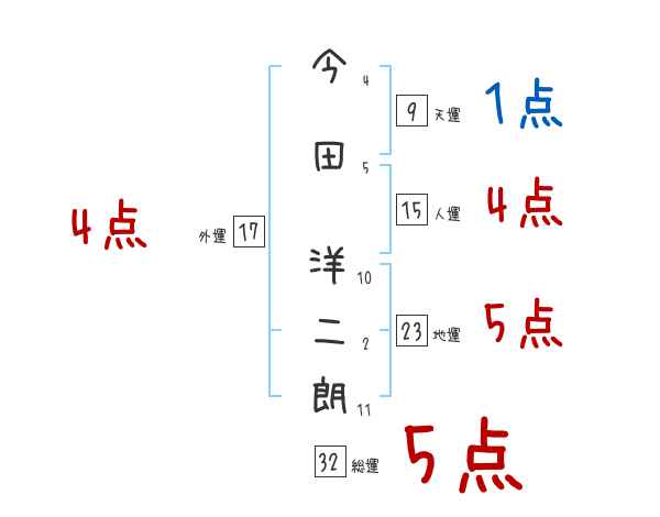 今田洋二朗さんの画数の鑑定結果