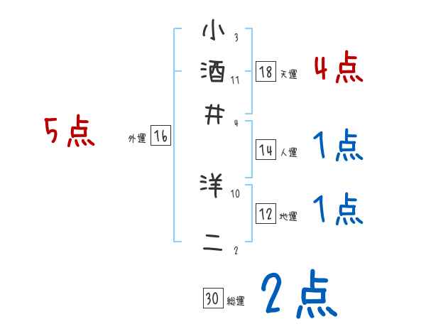 小酒井洋二さんの画数の鑑定結果