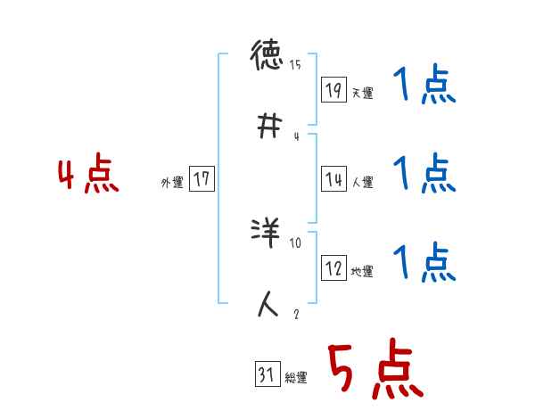 徳井洋人さんの画数の鑑定結果