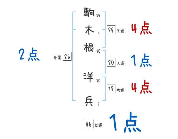 駒木根洋兵さんの画数の鑑定結果