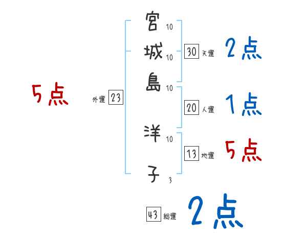 宮城島洋子さんの画数の鑑定結果