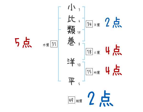 小比類巻洋平さんの画数の鑑定結果