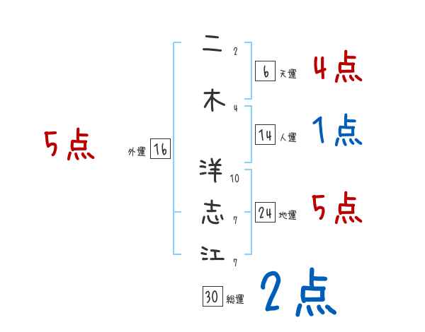 二木洋志江さんの画数の鑑定結果