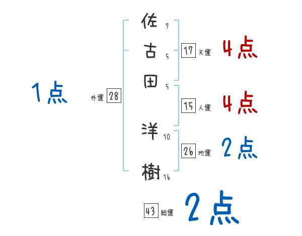 外運![]() | 佐古田洋樹さんの外運は28画の1つ星!家庭環境に注意。スポーツで活躍できる能力があるかも。 生活面を象徴する運勢です。外部から受ける影響力を表し、結婚運、家庭運や職場、環境への順応性を表します。 |