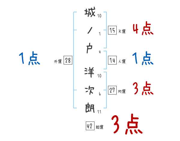 総運![]() | 城ノ戸洋次朗さんの総運は42画の3つ星!病気に注意。多芸であるが消極的でおとなしい。 あなたの人生を表す1番重要な運勢です。生涯を通じて影響する総合運となり、主に50歳以降の晩年期に影響を及ぼします。 |
