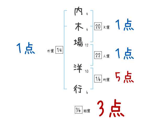 人運![]() | 内木場洋行さんの人運は22画の1つ星!努力することが苦手ないっぽう手先が器用。芸術性にも優れる。 性格や才能などを表す2番目に重要な運勢です。人間関係や協調性、社会的な成功に影響します。主に20歳から50歳ぐらいまでの中年期の運勢を表します。 |