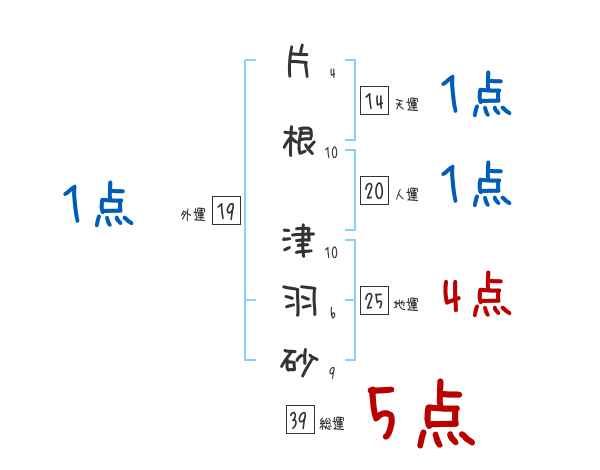 天運![]() | 片根津羽砂さんの天運は14画の1つ星!人に対して優しいがストレスを溜め込みがち。人間関係のトラブルを避けるよう気をつけましょう。 家系が持つ宿命的な運勢を表します。祖先から受け継いだ苗字ですので自分の力が及びません。家柄を象徴します。 |