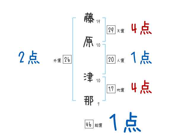 天運![]() | 藤原津那さんの天運は29画の4つ星!完全主義で才能がある。厳格な心の持ち主。 家系が持つ宿命的な運勢を表します。祖先から受け継いだ苗字ですので自分の力が及びません。家柄を象徴します。 |