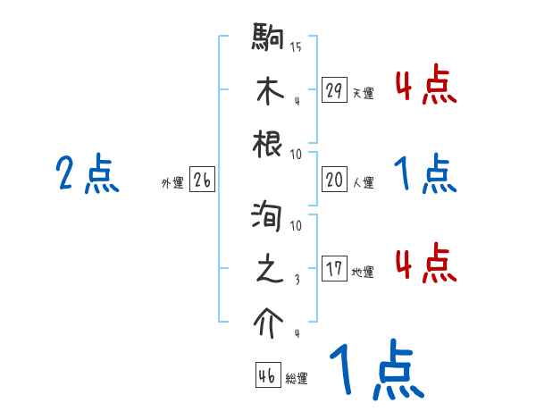 駒木根洵之介さんの画数の鑑定結果