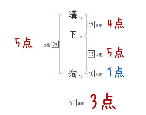 総運![]() | 溝下洵さんの総運は27画の3つ星!頭脳明晰だが強情で摩擦が多い傾向。孤立に注意。 あなたの人生を表す1番重要な運勢です。生涯を通じて影響する総合運となり、主に50歳以降の晩年期に影響を及ぼします。 |
