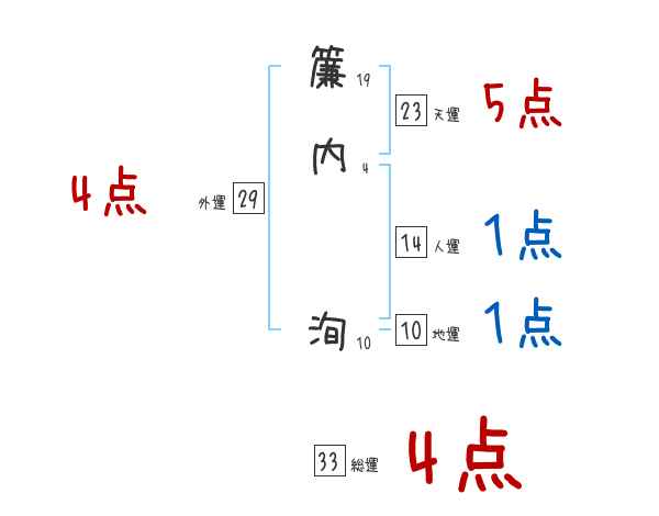 簾内洵さんの画数の鑑定結果