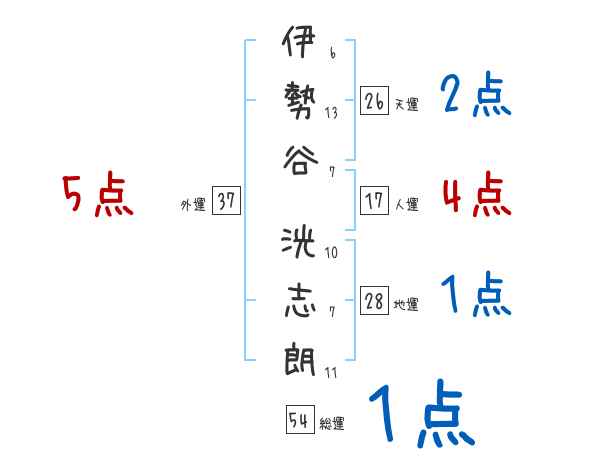 天運![]() | 伊勢谷洸志朗さんの天運は26画の2つ星!波瀾万丈かも。信頼できる人を大事にしましょう。 家系が持つ宿命的な運勢を表します。祖先から受け継いだ苗字ですので自分の力が及びません。家柄を象徴します。 |