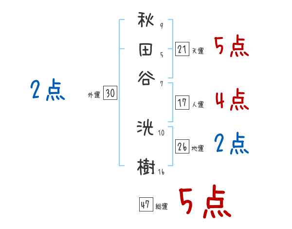 天運![]() | 秋田谷洸樹さんの天運は21画の5つ星!統率力がある。独立し成功する。名誉を手に入れる。 家系が持つ宿命的な運勢を表します。祖先から受け継いだ苗字ですので自分の力が及びません。家柄を象徴します。 |