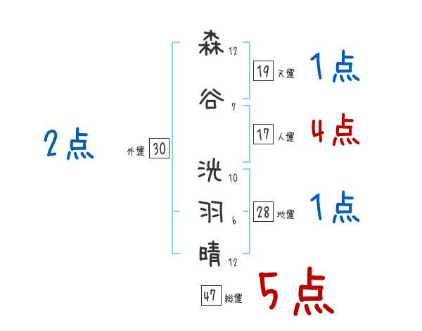 天運![]() | 森谷洸羽晴さんの天運は19画の1つ星!優れた才能を持ちますが、協調性が足りないことも。周りの人と協力する事を意識しましょう。 家系が持つ宿命的な運勢を表します。祖先から受け継いだ苗字ですので自分の力が及びません。家柄を象徴します。 |