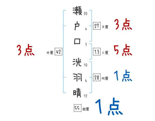 瀬戸口洸羽晴さんの画数の鑑定結果