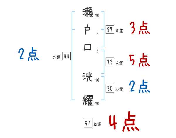 家系が持つ宿命的な運勢を表します。祖先から受け継いだ苗字ですので自分の力が及びません。家柄を象徴します。