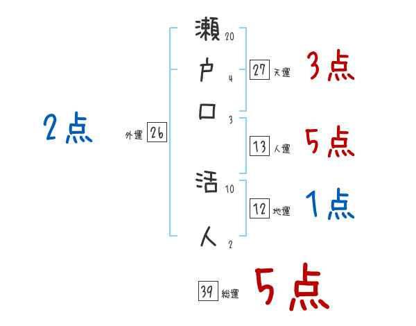 瀬戸口活人さんの画数の鑑定結果